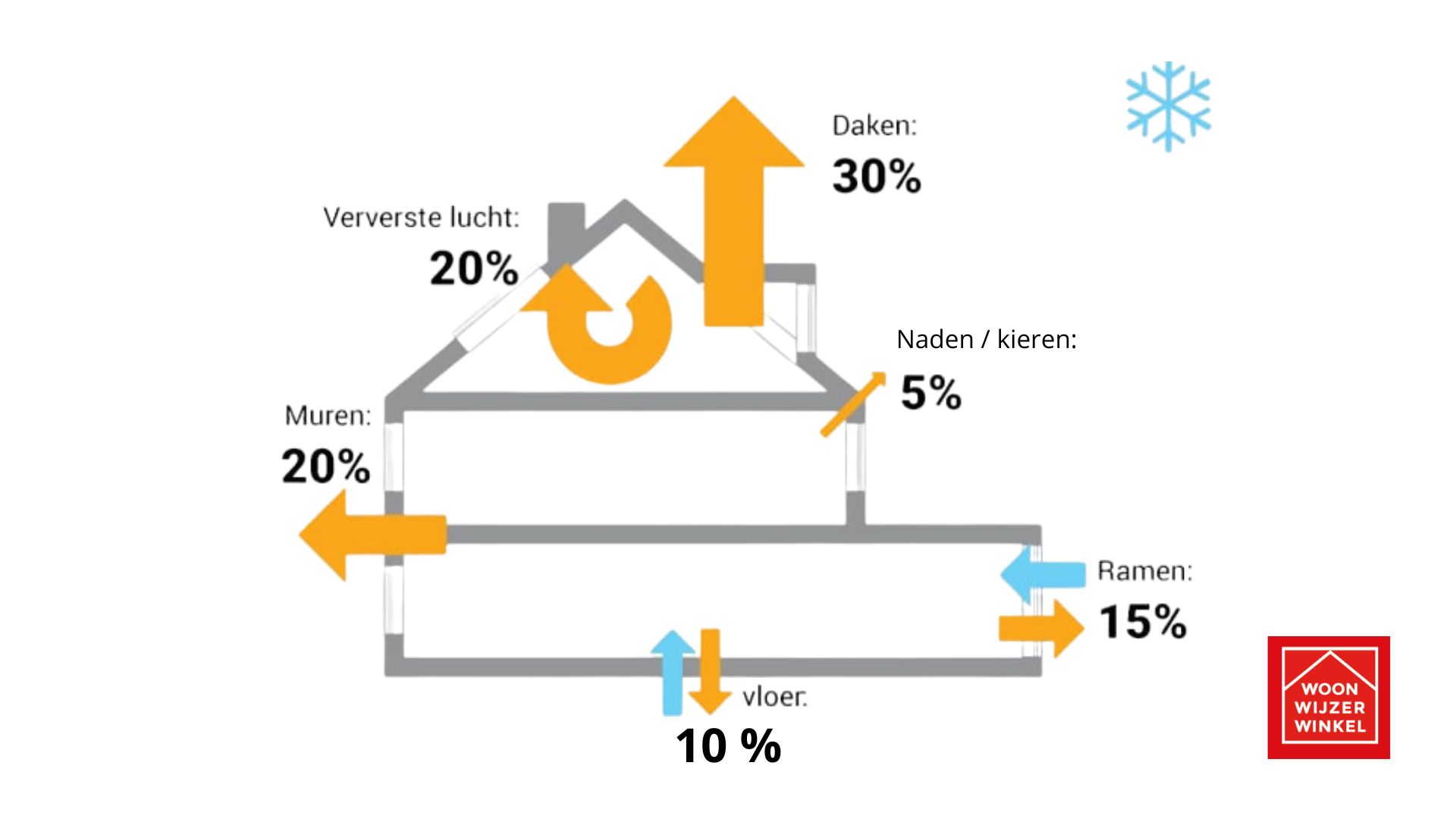 Waar gaat de warmte verloren? (in een ongeïsoleerd huis)